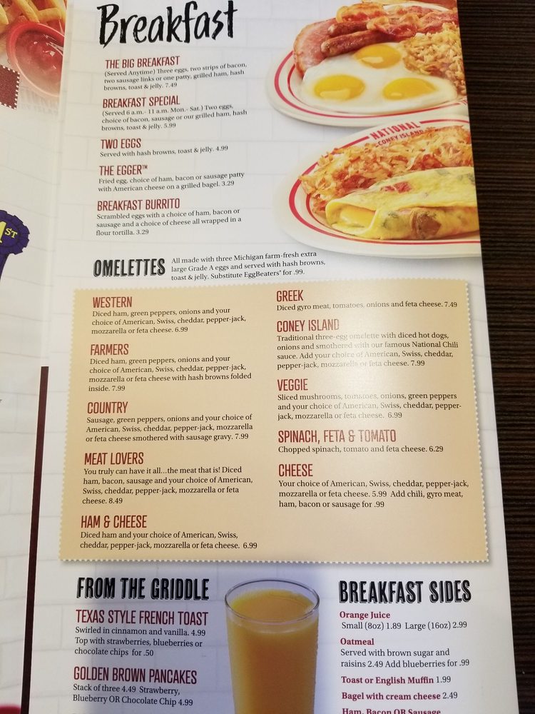 With a welcoming atmosphere, National Coney Island emphasizes friendly service and speedy meals. Highlights include their iconic Coney Island dogs and hearty breakfast plates, all prepared with care. Customers like Ashley B. and Ken K. rave about the brisk service and the cleanliness, ensuring a pleasant dining experience.